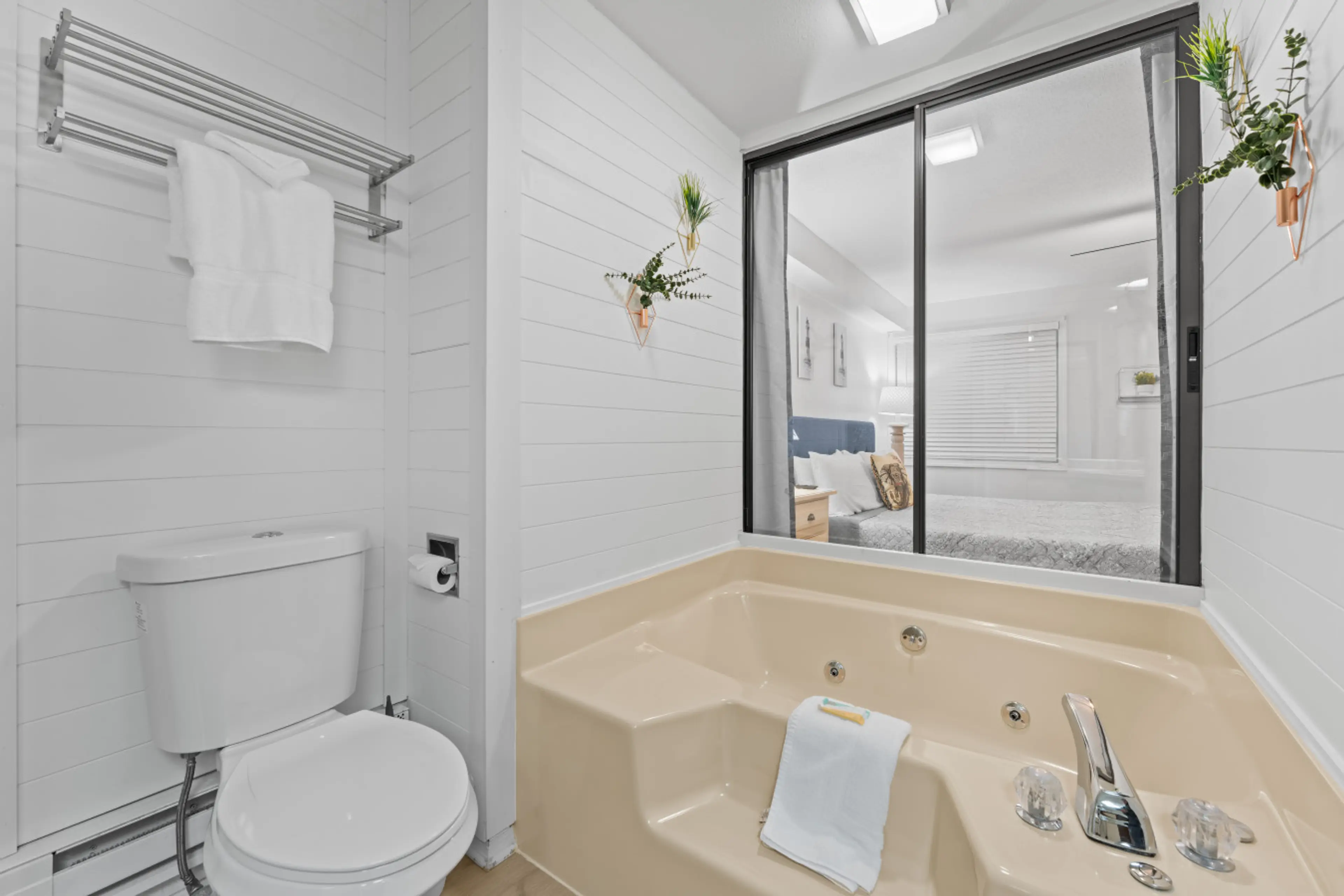 This charming and modern vacation rental offers all the comforts of home, including a fully equipped kitchen, cozy living room, and a private balcony. The bathroom features a Jacuzzi tub, perfect for a relaxing soak after a day of exploring the area. Guests will have access to a variety of ameniti...