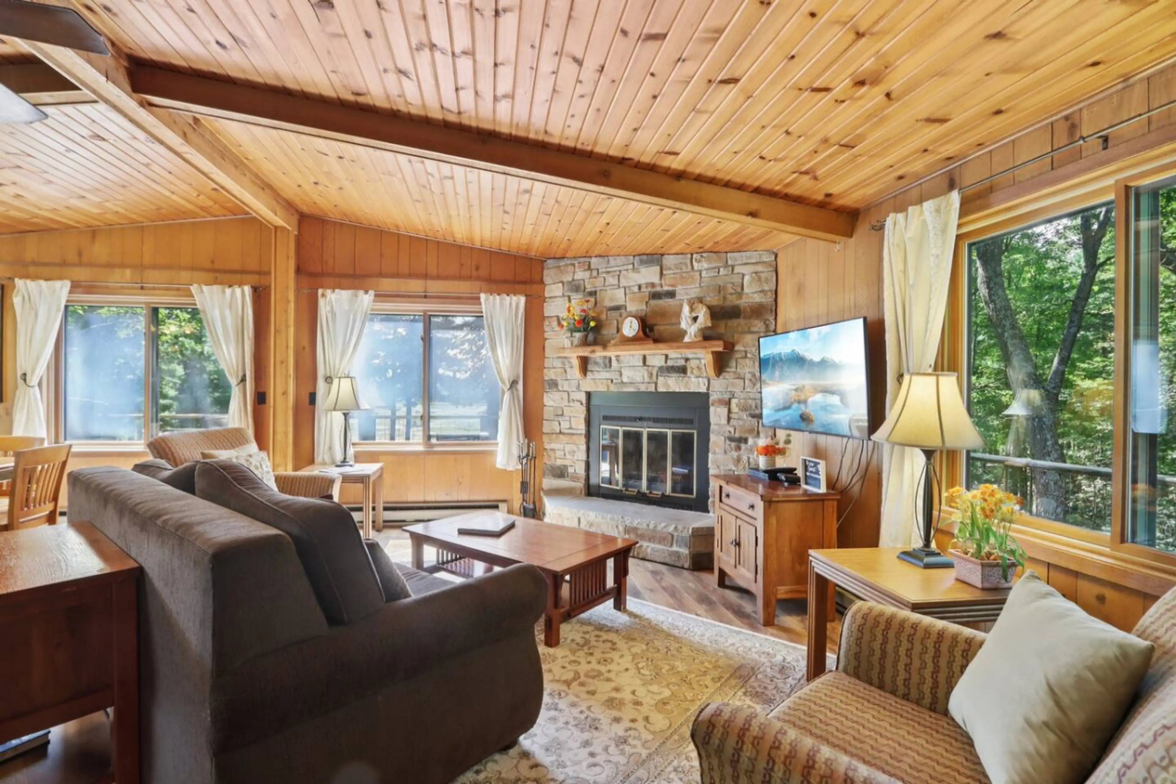Escape to Lakeside Haven on Fur Court: your private waterfront retreat just minutes from Wisconsin Dells, on Blue Lake. Wake up to stunning lake views, enjoy coffee on the deck, and unwind by the firepit under starry skies. This cozy cabin features a full kitchen, Wi-Fi, smart TV, and private lake...